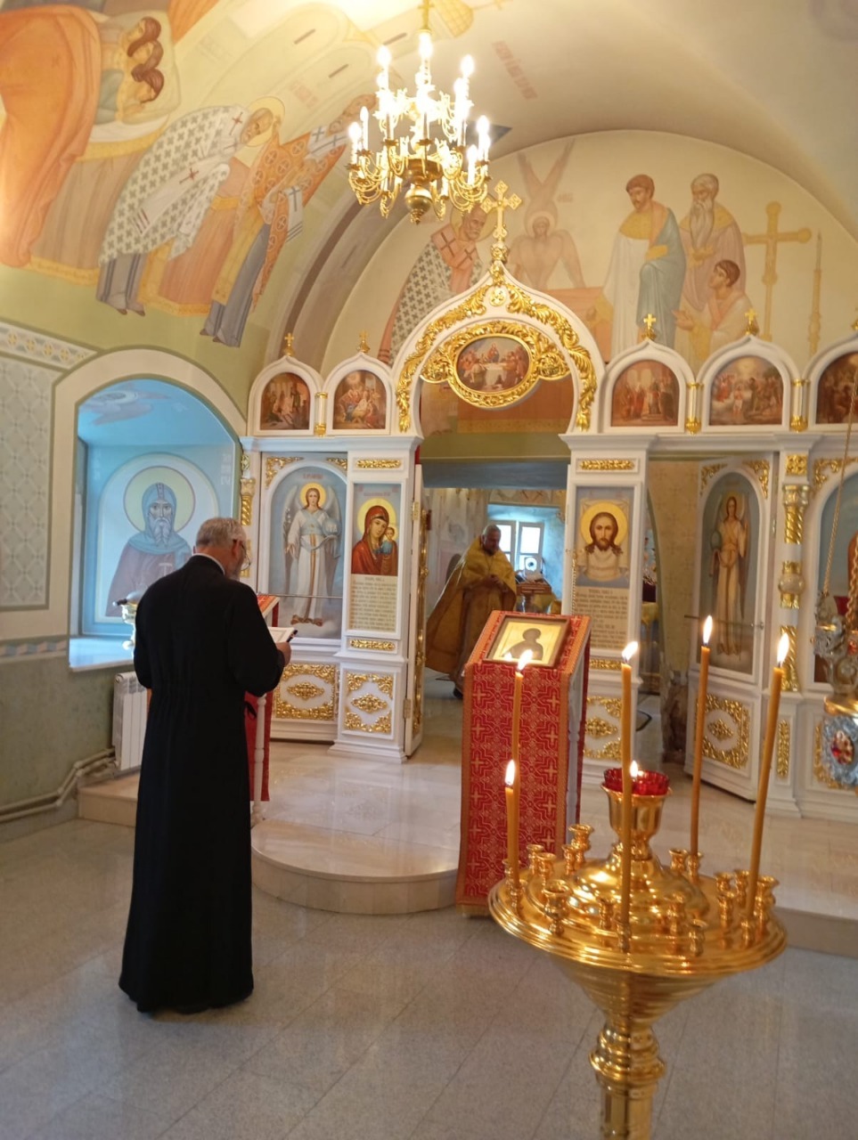 15 АВГУСТА 2025 г. в пятницу 10-ой седмицы по Пятидесятнице, в день памяти перенесение мощей св.первомученика и архидиакона Стефана (ок. 428) и блж. Василия Московского, Христа ради юродивого, чудотворца (1557), в Успенском храме в приделе в честь свт. Николая Чудотворца было совершено утреннее богослужение и Литургия. Богослужение возглавил клирик Нижегородского Благовещенского мужского монастыря иерей Владимир Погодин.
